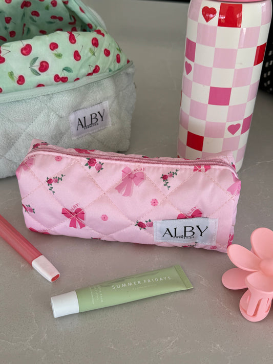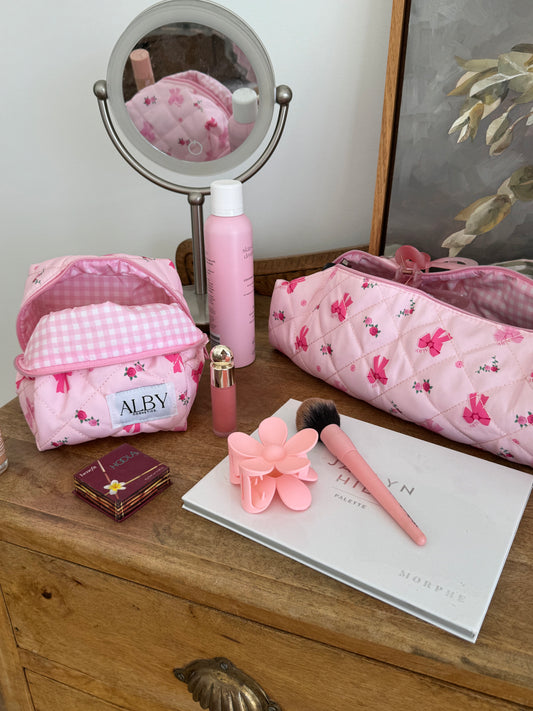 This is THE cosmetic case I’ve been looking for! Size DOES matter! The size is amazing as it opens out wide for easy access to find what you need. Fits full sized bottlesof moisturiser with room to spare. No more pokey little bags with this in my life. Not to mention how cute it looks! Love the contrast lining in a wipe off material in case of any spills. 10/10 recommend!