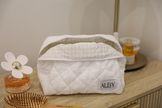 This is THE cosmetic case I’ve been looking for! Size DOES matter! The size is amazing as it opens out wide for easy access to find what you need. Fits full sized bottlesof moisturiser with room to spare. No more pokey little bags with this in my life. Not to mention how cute it looks! Love the contrast lining in a wipe off material in case of any spills. 10/10 recommend!
