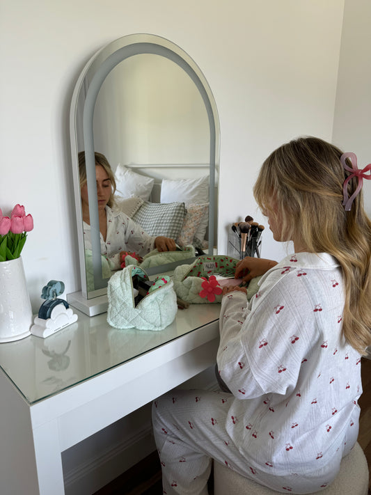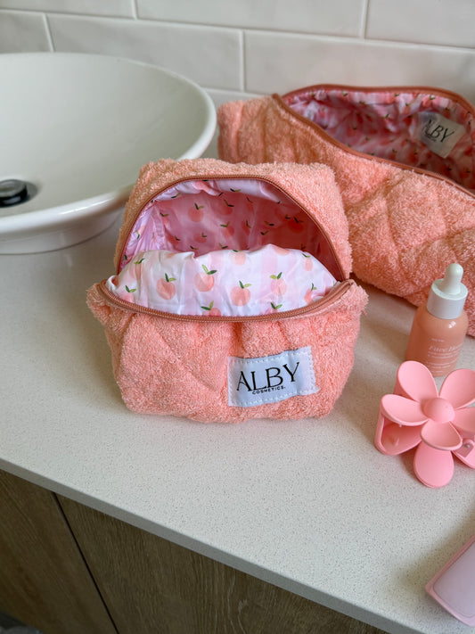 This is THE cosmetic case I’ve been looking for! Size DOES matter! The size is amazing as it opens out wide for easy access to find what you need. Fits full sized bottlesof moisturiser with room to spare. No more pokey little bags with this in my life. Not to mention how cute it looks! Love the contrast lining in a wipe off material in case of any spills. 10/10 recommend!