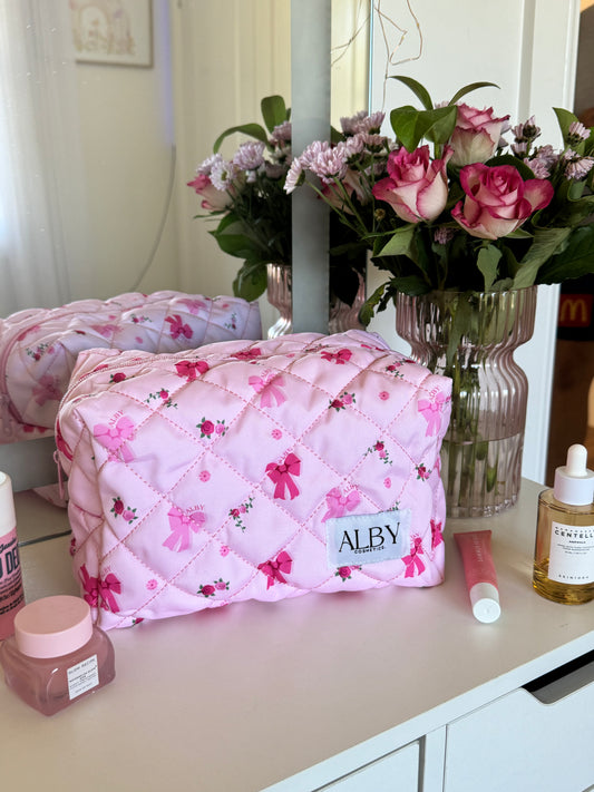 This is THE cosmetic case Iāve been looking for! Size DOES matter! The size is amazing as it opens out wide for easy access to find what you need. Fits full sized bottlesof moisturiser with room to spare. No more pokey little bags with this in my life. Not to mention how cute it looks! Love the contrast lining in a wipe off material in case of any spills. 10/10 recommend!