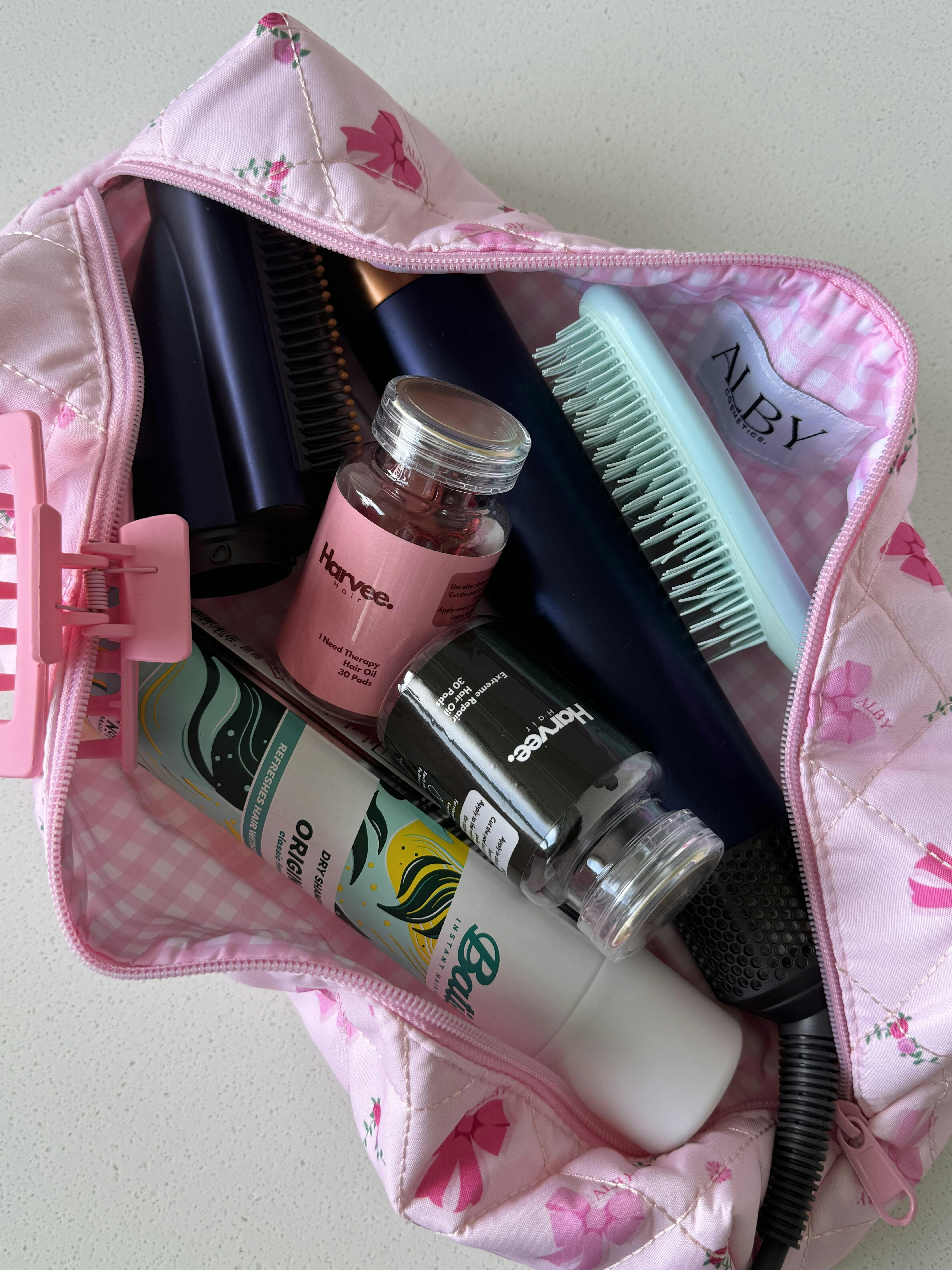 Our lux 'Strawberry Shortcake' Hair Tool bag is the perfect size to fit all your hair essentials! Our hair tool bags are best used for hair care, hair tools, accessories, traveling, just about anything you can think of, it will be your best friend🍓