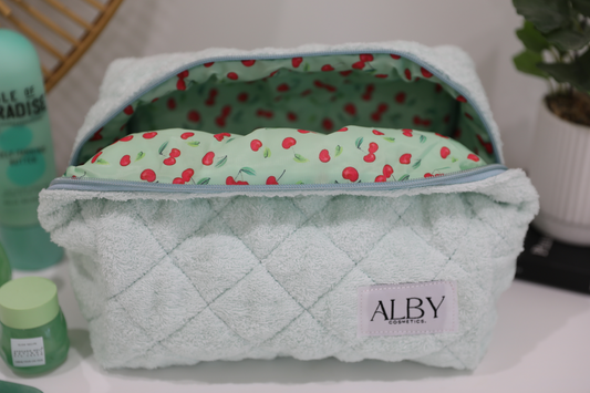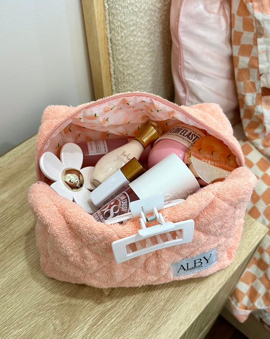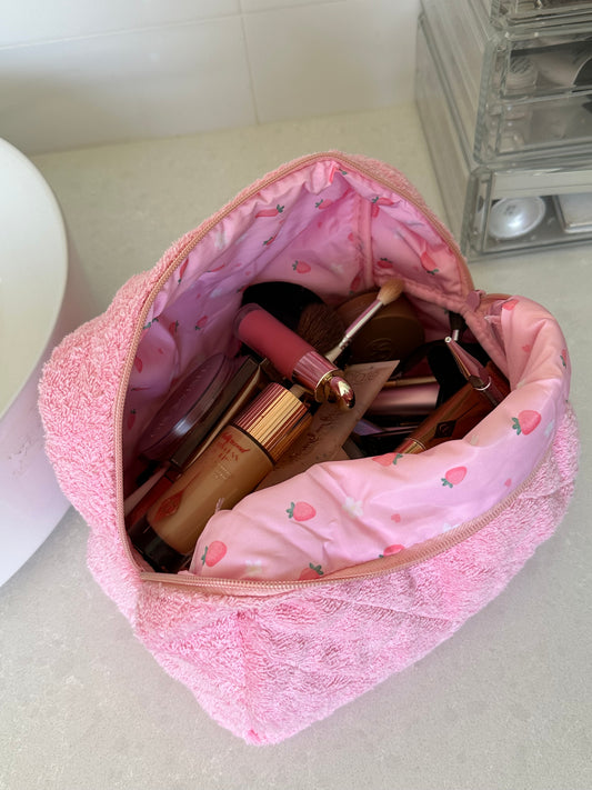 This is THE cosmetic case I’ve been looking for! Size DOES matter! The size is amazing as it opens out wide for easy access to find what you need. Fits full sized bottlesof moisturiser with room to spare. No more pokey little bags with this in my life. Not to mention how cute it looks! Love the contrast lining in a wipe off material in case of any spills. 10/10 recommend!